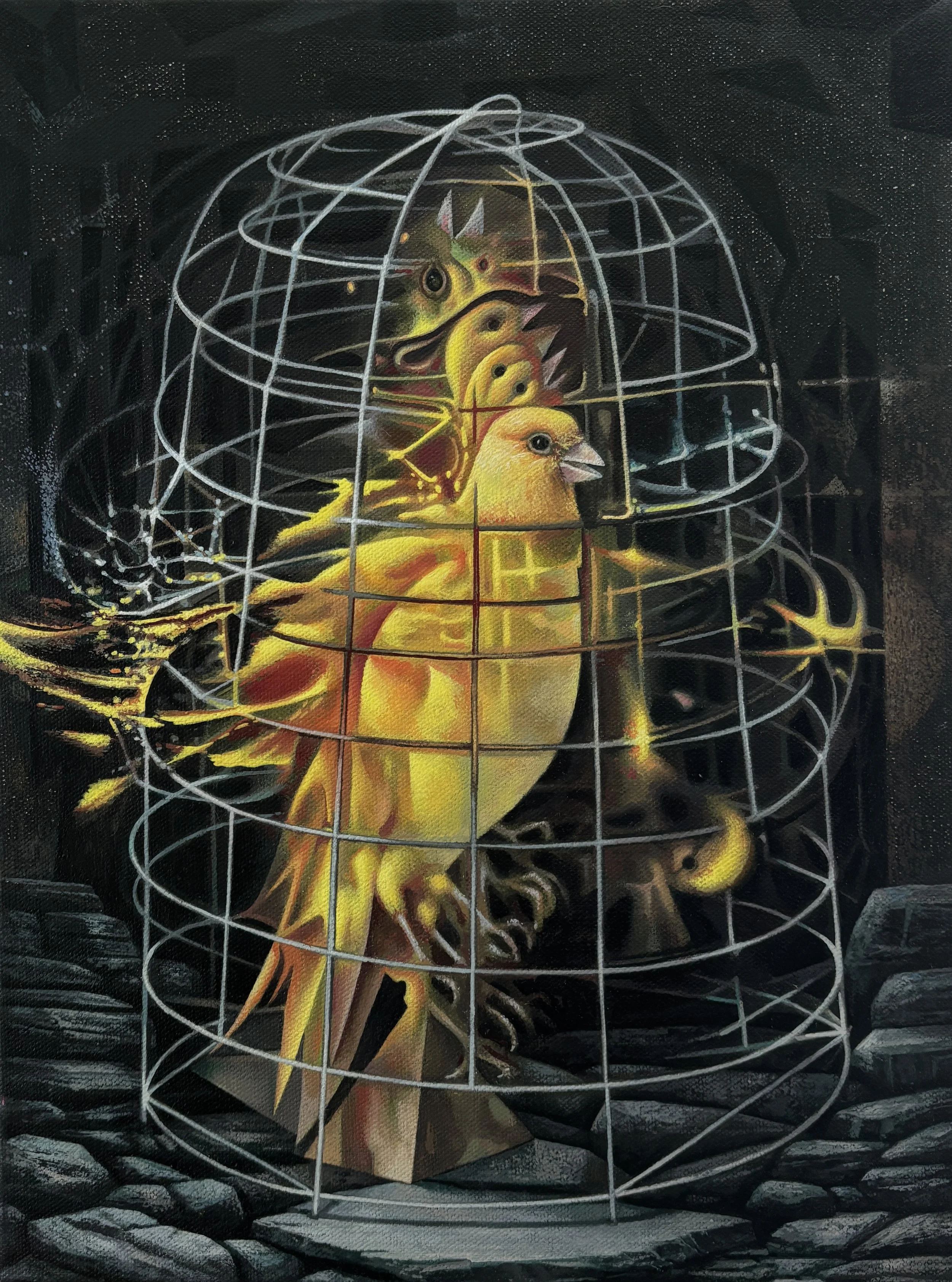 Back Back The Canary in the Coal Mine The Canary in the Coal MineOil on Canvas 2026Added to the Vallario Public Stewardship Collection